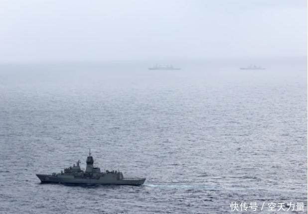 远远跟踪中国海军舰队的澳大利亚“阿伦塔”号护卫舰