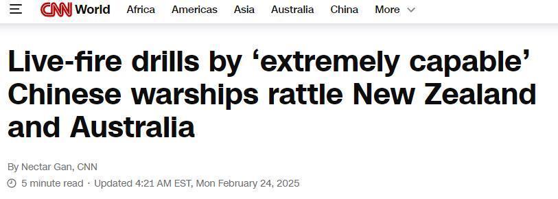 美国有线电视新闻网更不忘火上添油,宣称“配备有极强武器的中国军舰进行了史无前例的火力表演”,这是中国打造全球性蓝水海军的一部分。美国智库还宣称,中国海军在继续扩大地区巡逻的范围和强度,包括在澳大利亚和南太平洋诸岛附近海域,这表明了中国在太平洋地区的雄心,不仅与澳大利亚也与美国竞争影响力。
